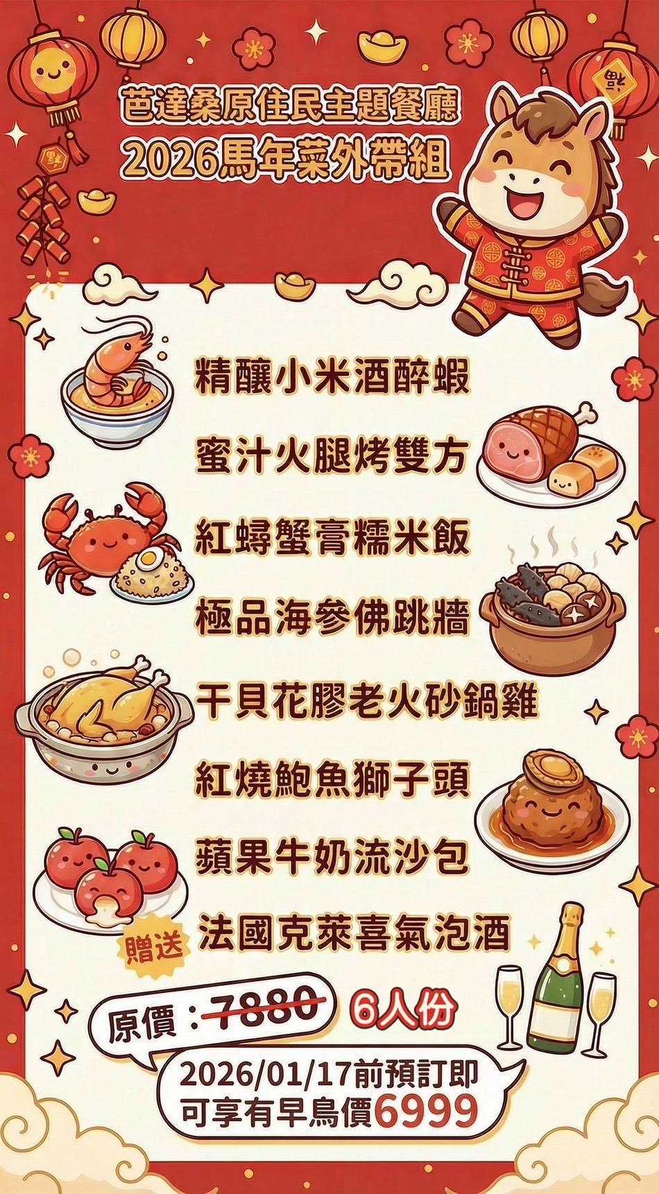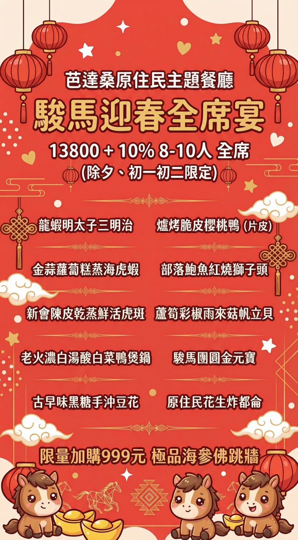 ・駿馬迎春全席宴(8–10人)13800 + 10%