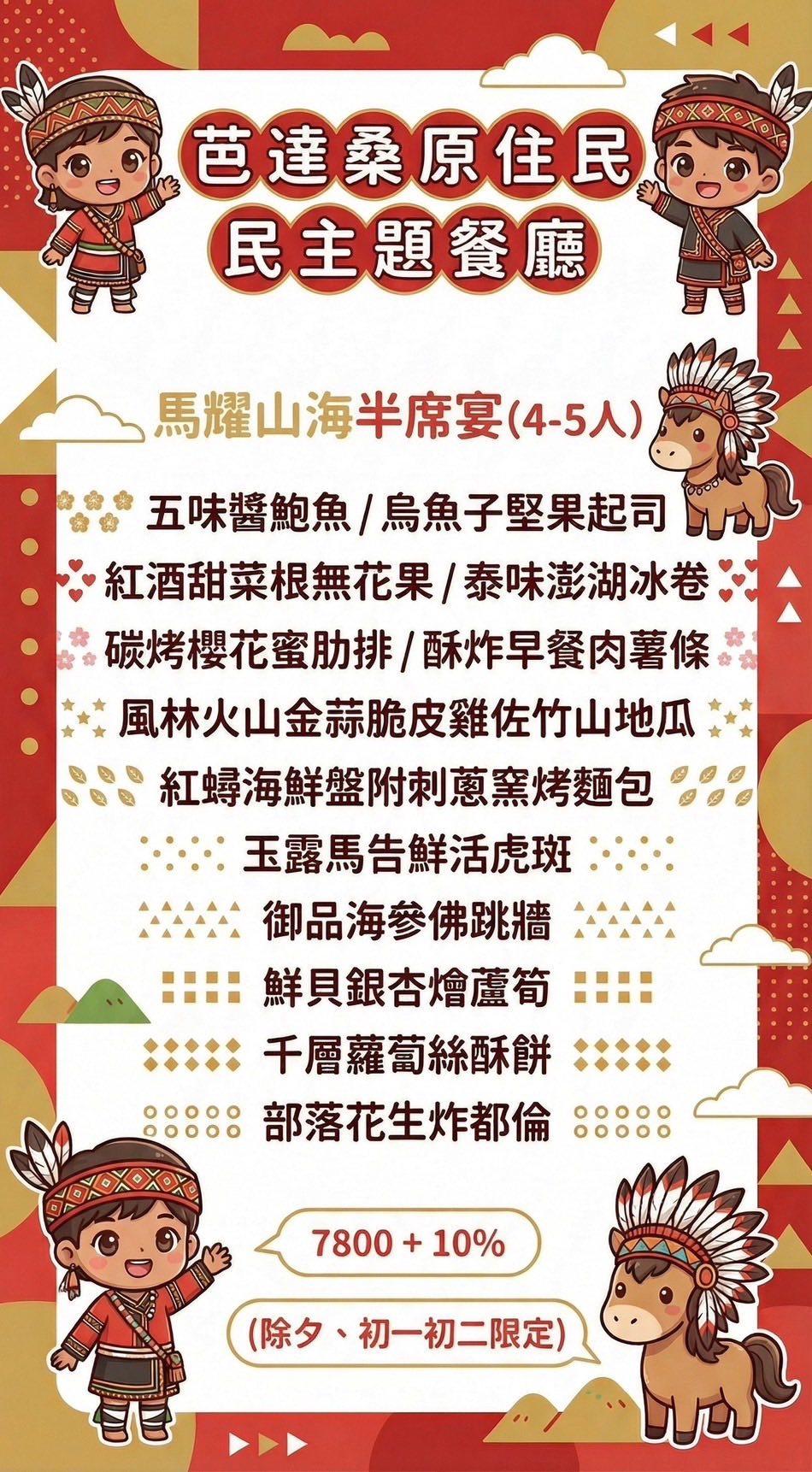 ・馬耀山海半席宴(4–5人)7800 + 10%